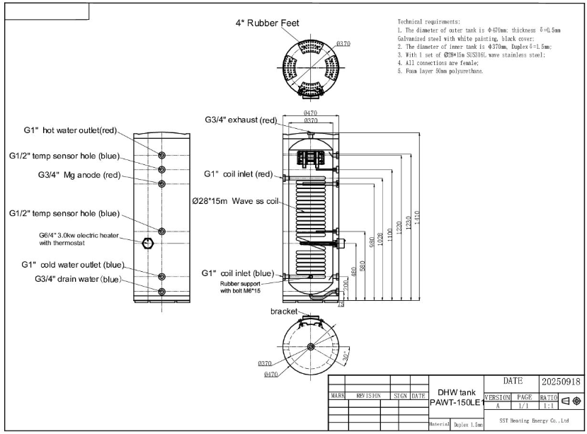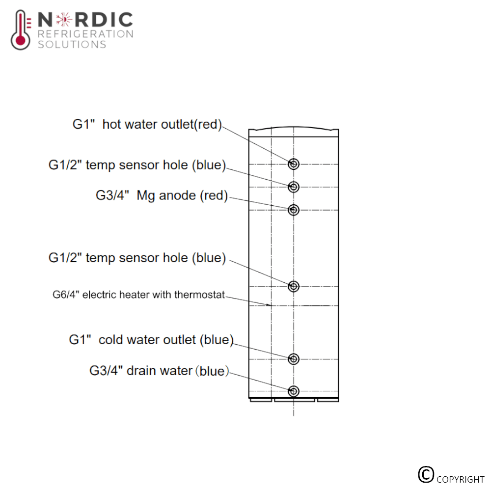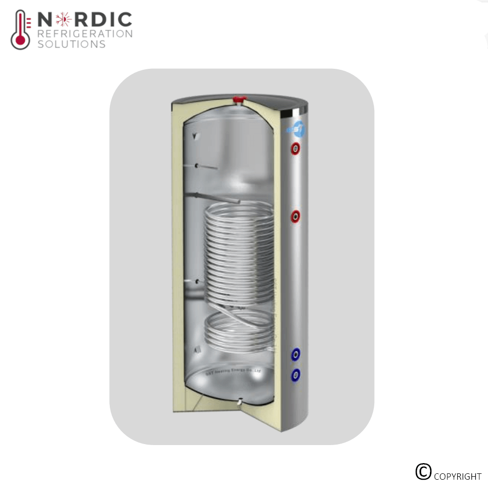 Denne brugsvandstank lavet af rustfri DUPLEX stål fungere godt sammen med Nordic R290 propane luft/vand varmepumpen. Med 2,0 m² spiral kan den anvend sammen med alle modellerne inde for serien til privat bebyggelse. Tanken har indbygget 3.0KW/230V El stav, som sikkerhed hvis der skulle opstå driftsforstyrrelser på varmepumpen. Den er designet til drift tryk på 10bar og lever derfor fuldt ud op til danske krav.